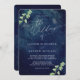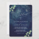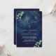 Vackert mörk blått bröllopsinbjudan med vackert målad vattenfärgsgrej. Fullt anpassade med namn, data, plats osv.