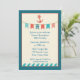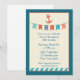 En nautisk temainbjudning med blå och korallbuntning flaggor med ankaraccent och repor, blå ram och korallrev på krämbakgrund med subtil rand mönster. grund har en blå vågbild. Anpassa texten med dina party-uppgifter. Lämpligt för tillfälle, ålder eller gender. Vissa bilder av Freepix.com