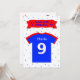 Den här stjärnan 9th födelsedagsfest inbjudan, underbar för både pojkar och flickor, är redot för er personlig. Meddelandet på den stora röda födelsedagskalan är "Kom till min nionde födelsedagsfest". Det finns också en röd och blå sportskjorta stil på kortets framsida, med ett stort vitt nummer 9 och plats för ett namn. På baksidan av kortet kan du ange information om party.