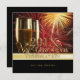 Anpassadets Nyårsafton-fest med festdesign med gyllene snyggtar och band, champagneglas och firande-fyrverkerier på elegant svarta. Anpassa den med egen text eller anpassa den ytterligare om du vill justera layouten eller välja en annan inbjudan storlek.