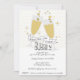Den vackra nyårsaftonen för vita bakgrunder Nattfesten "Ta på bubblan" visas på mitten i svart, champagneglas med bubblor. Anpassa med hälsning, namn och namn.