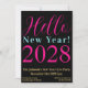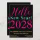Det här är en modern och chic, Nyårsafton Party-inbjudan. Det är i trender shock rosa och svart, med en modern typografisk skriptutformning. Det har budskapet: "Hej nytt år! 2028 tum med utrymme för att lägga till året firande. Under den finns det utrymme för dig att lägga till ditt namn och din information om party, inklusive plats, tid och OSA. Det huvudsakliga "nyårslandet!"-typografimotivet upprepas på baksidan. Om du vill anpassa eller bara lägga till ditt namn, informationen om firande och party, kan du även ändra resten av texten genom att klicka på Anpassa den här kommandoknappen. Om du vill ändra färg eller teckensnitt markerar du verktyg som redigerar designen. Om du behöver hjälp med att anpassa, matcha produkter eller ett anpassad design kontaktar du mig via zazzle-chatta eller e-post: ursuladawnmoon@gmail.com Gott nytt år!