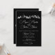 Fira din övningsmiddag med denna eleganta svart-vita siluett av en stadshimmel bröllopsinbjudan, perfekt för moderna bröllop i New York. Med en djärv siluett av New Yorks stadshimmel och romantiska skrivstil, sätter denna design en sofistikerad ton för en tak-, innerstad- eller New York-tematisk fest. Den slående kontrasten mellan den mörka bakgrunden och den ljusa vita texten säkerställer att era bröllopsdetaljer lyser klart. Perfekt för par som söker en modern inbjudan med tidlös charm, fångar detta kort essensen av en chic metropolitisk kärlekshistoria.