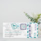 Ett boardingkort inspirerade biljett till roligt passet frimärke och rand. Visas i skuggor av Aqua, Teal, Navy, Mörk Grått och Light Grått. På baksidan finns utrymme i extra för alla typer av hotell, resor eller webbplatsinformation.