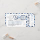 Ett boardingkort inspirerade biljett med uppgifter om roligtens pass frimärke och rand. Visas i nyanser av flottan, pulverblått, Mörk Grått och Light Grått. På baksidan finns utrymme i extra för hotell-, rese- eller webbplatsinformation.