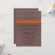 Inget säger höst som bränd orange och brun. De här färg är en perfekt för ett fallbröllop. Ett lodrät med platta kort, denna minimalistiska bröllop-station har ett brunt färg med ett kornigt struktur. Ett bränt band för orange sträcker sig över kortets övre tredjedel. Bandet innehåller en mönster av röd, sage och blå linjer-korsande korsande.