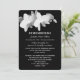 Denna fantastiska vita orkidéinbjudan på svart gör en vacker dödsårsdag-inbjudan. Rakt under orkidéerna står ordet "KOM IHÅG". Namnet på din älskade och datum visas nedan. Följt av orden "Ett liv så vackert levt förtjänar att bli vackert ihågkommet." Du kan anpassa alla detaljer om din minnesstund på raderna nedan. En vacker sentimental inbjudan för en dödsminneshögtid. Copyright sympati tack