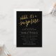 Överraskad födelsedagsfest inbjudan med svart och guld. Det översta skriften lyder: "Det är en överraskning." Anpassa bakgrunden till färg och ordalydelsen.