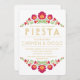En vacker, röd, blomsterinspirerad fiesta-inbjudan för att fira det nya paret. Innehåller en röd blommig design och guldbokstäver. Perfekt för en mexikansk temabaserad bröllopsfest, möhippa eller parfest. Lätt att anpassa genom att välja " Anpassa " -knappen för att lägga till din egen formulering.