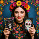💀 inbjudan till partiet Colorful Día de Muertos