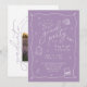 En gradpartsinbjudan som är en blandning av stollig och retrocharm. Den här lavender- och vitdesignen blandar ett trendig färg-schema med en ny, lekfull vibe. Kreativets dockor - en studentmössa, en bärbar dator, ryggsäck, bokar, kaffe, penna, diplom, ballong och stjärnor - tillför firande en ljushet. Varje inslag kan om så önskas storleksändras, placeras om eller tas bort. Anpassa mallen med ditt namn och information om party på framsidan. På baksidan lägger du till foto, år och skola namn. © Kimbelled, LLC