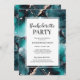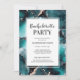 Trendig och en modern inbjudan från Bachelorette eller Hen Party med teal och guld-alkohol bläck mönster och matchande baksida. © Mini Moi-utskrifter