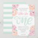 Den här blomman första födelsedagsfest inbjudan är perfekt för den söta lilla flickan i ditt liv. Den mjuka rosan, persikan och mynten är den perfekt viskartade färg-kamouten för en första födelsedag i party firande.
