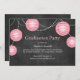 Ljusa rosa party-lyktor på en illustrerad bakgrund på en ritad tavla anger tonen för denna inbjudan till studenten och party. Om det behövs fler objekt i den här samlingen kontaktar du oss med din begäran på prettyfancyinvites@gmail.com