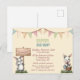 Det bockaste Påskägget Hunt-inbjudan vykort med en kanin som håller ett tecken och en annan kanin med basket i Påskäggen. En färgstark banderoll flagga gör bild färdigt.