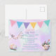 Det bockaste Påskägget Hunt-inbjudan vykort med en fågel på gren tittar ner på några Påskägg och kopp på ägg och blommor på sidan. En färgstark banderoll flagga gör bild färdigt.