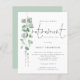 Ett ekonomiskt alternativ i BUDGET på en mindre storlek på 4,5 x 5,6 tum (110 lbs vikt), som är av samma tjocklek som ett vykort (är dock inte lämpligt för använda som vykort). OBSERVERA ATT DET FINNS EN inbjudan per lakan. Inbjudan till budgeteukalyptus Script Pension. Minimalistiskt botaniskt stil, med vattenfärgsgrön som flyter ner på den lämnat sidan och text till högerna. Ett handskript för Pension och resten av texten som du lätt kan anpassa.