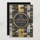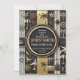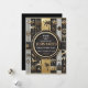 Det här kortet har en snyggt- och elegant-design för en pension-partikbjudan. Layouten är uppdelad i avsnitt med svarta, vita och guld-toner, vilket ge den till en lyxande och berömmande känsla. Kortets mittpunkt visningar på ett framträdande sätt information om party, framtagen av ett cirkulärt gräns med metallaccenter. Den omgivande konstruktionen omfattar dekorativa inslag som symboliserar fritid och resor, t.ex. handflatan träd, flygplan, resväskor, paraplyer och luftballonger, tillsammans med nautisk och semestermässig utrustning. De intrikata accenterna från guld och kombinationen av lodrät rand skapar ett sofistikerat och festivt bedövningsmedel.
