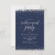 Den här eleganten och festinbjudan på 3,5 x 5 tum i pension innehåller silver (simulerad folie) som överensstämmer med brev som säger "Pension Party" i ett vackert skript. Bakgrunden färg är marinblå, men kan ändras till valfritt färg. Anpassa inbjudan med egen information - ett enkelt sätt att skapa ett kort för personlig. Kortets baksida har en passande silver-streckad linje mönster - återigen med en marin blå bakgrund som kan anpassas till vilken färg som helst av dina önskemål. Ett enkelt och elegant sätt att fira ett pension för gästerna i inbjudan.
