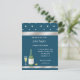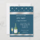 En elegant blå inbjudan perfekt för alla män eller kvinnor som går i pension. Den har vita stjärnor högst upp och grafik med silverband högst upp och längst ner. En bild av champagne och ett glas sitter i det nedre vänstra hörnet. Du anpassar all text.