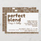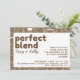 En möhippa för kaffet älskare som är "perfekt blandning". Espresso-brun och vit inbjudan med roligtens bakgrund av kaffe koppar och punkter, rent teckensnitt och konstnärlig layout. Inbjudan gäster ska hälla ut lite kärlek för paret lycklig! Skriv ut den här coolans inbjudan eller ladda ned den digitalt och hämta kaffebryggan! Underbar för ett par duschar möhippor.