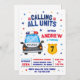 Personlig, modern barnens polisdag - inbjudan! Perfekt för en brottsbekämpande tematisk födelsedagsfest, denna eleganta och roligt inbjudan innehåller fet polisrelaterad grafik, från märken till skrotbilar. Designad med en modern twist är det anpassadet med dina evenemangsuppgifter, skapar det unikt och spännande för din lilla officers stora dag. Inbjudan anger tonen för en roligt och ett aktionsfullt firande som era gäster kommer att göra i kärlek! 🚓 🎉 🎟️