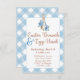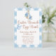 Så söt! Peter Rabbit Påsk Brunch och inbjudan i blå gingham plaid design.