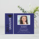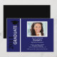Starta din höger av evenemang med vår inbjudan/avisering av studenten-fotot i klassen Blue & Black. Perfekt studenten inbjudan till högskoleexamen i studenten eller högskoleexamen. Fyll bara i informationen och lägg till ditt foto och du är redo att gå. Besök vår butik på www.celebrateitgraduations.com om du vill ha ett stort antal studentkort!