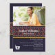 De inbjudna gästerna kommer att vara lycklig till i er glädje vid detta särskilda tillfälle när de får denna vackra inbjudan. Den blå bakgrunden har ett sikligt band med bilder. Lägg bara till ditt favoritfoto. Den mortel- och mortelstödsbilden kan dras till vilken plats som helst, göras större eller mindre eller elimineras.