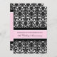 Inbjudningskort till 10-årsjubileum för bröllop i elegant ljus rosafärgad, svart och vit modern blomsterdamaskmönster, delikat och modern. Kan anpassas med dina fests detaljer.