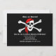 En dramatisk återgivning av en pirat- och korsbensinbjudan. Den vita skallen har en röd bandana och en ögonepatch mot en svart bakgrund.