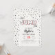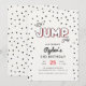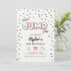 Fira din sons födelsedagsfest med vår röda, svarta och gråa studsmatta eller hoppborg-inbjudan. Designen har djärva färger och lekfull typografi.