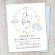 Kute, vismisk och budgetvänlig duschinbjudan till pojke par med boho-inspirerad blått och gult vattenfärger i regnbåge, sol, hjärtan, stjärnor, måne och moln och "Oh Baby!" i ett kalligrafiskt skript för snyggt. Lägg till namn i mor och far och duschdetaljer i enkel modern typografi.
