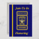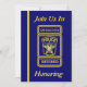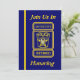 Denna blåa och guld-inbjudan är på framsidan dekorerad med en polisdetektiv anpassningsbar-logotyp. Du kan anpassa det här kortet genom att placera informationen i de angivna rutorna. Du kan också anpassa brickan på framsidan och baksidan med honungens namn.