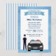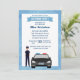 Födelsedagsinbjudan för en manlig polis. Designen har en polisbil och en manlig polis med orden du är inbjuden till en födelsedagsfest. Lätt att anpassa med dina festdetaljer. Lägg till namnet på avdelningen på bilens skyltar.