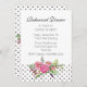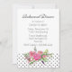 Elegant, vit bröllop-repetitionsmiddagsinbjudan, med ett litet svart prickband från polka, över grund och vackra vattenfärgsbilder från rosa peonier. Anpassa texten till kostym som din bröllop-händelse behöver.