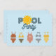 Inbjudan till poolparty med badkläder med vintagefärgschema och partydetaljer på baksidan.