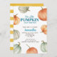 Inbjudan till höstbabyshower beundrad med vackra pumpor.