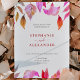 Lila och Pinks Höst löv bröllopsinbjudan. Du kan ändra teckensnittet färg och teckensnittstypen på menyn Redigera. Du kan också ändra färg och bakgrund på båda sidor om du vill.