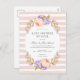 Oavsett om du inte kan samlas för ett party på grund av att koronavirus social avstånd riktlinjer, eller om du avstånd familj och vänner är alldeles för långt borta, kommer den här vackra Baby Shower by Mail-inbjudan att göra det möjligt för nära och kära att fira nyfödd bebis var som helst. Den här söt botaniska designen har en vattenfärg ram av persiko- och lavenderblommor på en , strimlad bakgrund. Använda designen verktyg för att anpassa texten, redigera typsnitt och färg eller lägga till egna foton för att skapa en babyduschinbjudan till elegant vår blommigt.