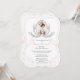 Steg tillbaka till förnäma tider med denna inbjudan till tekallskap inspirerad av Regency-eran. Den mjuka rosa kanten med fjäderlika utsmyckningar framhäver den kvinnliga porträttet som är infattat i en enkel blomsterrabatt.