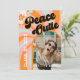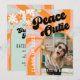 Roligt retro hippie vibes fotoinbjudan till studentfest! Snabb solsprängning av linjer i mjuk rosa, pastellblått och orange med blommor och ord "Peace Outie" i återutskrift. Lägg till ditt student-foto på framsidan och studentfesten på baksidan.
