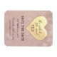 Modern kalligrafi-manus, enkel, inbjudande magnet ro guld bröllop spara datum, med romantiskt citat och söt faux foil-hjärta från guld, symbol för starkt, ändlöst kärlek, värme, rikedom och tro.