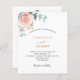 Dekorerad med en blommigt för guld och rosa, blomma från ro och grönt, vattenfärgad eukalyptus löv, spriter, grönsaks- och faux ro sprigs. Anpassa och lägg till information om namn och bröllop. Tillbaka: lägg till ett foto i bågen ram. 1 lakan = 1 inbjudan tryckt kant till kant.