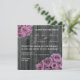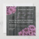 En bröllopsinbjudan med ett bakgrundsfoto av barrträ. Antique inspirerade bilder av rosa/mauve bukett med rosor överst till lämnat och grund höger hörn. Anpassa den matchande texten med information om händelsen. Baksidan har ro-petaler som är spridda över barrträets bakgrund. Formuleringen kommer från brud och brudgumm tillsammans med föräldrarna.