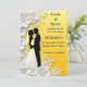 Romantisk illustration med en brud och en groom silhuetterad i blommigtens bakgrund.