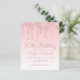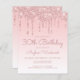 I inbjudan till trendig 30års födelsedag finns en glatt bakgrund av rosa faux drop gräns och rosa Mbre. Ord "30års födelsedag" och namn på hedersgästen visas i handskriftsskriptet avslappnad rosa, med resten av anpassadet i rosa sans serif font. Samma rosa glitter drop-design visas på baksidan.