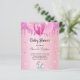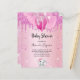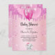 För en babydusch, fira en flicka. En rosa Faux metallic tittar bakgrund. Dekorerad med faux glitter, ballonger och en elefant flicka. Anpassa och lägga till uppgifter om namn i mamma till namn och party. Namn och texten: Baby Shower är skrivet med ett handskript i stil