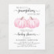 En söt, glad och budgetvänlig duschinbjudan till virtuell tvillingdusch i flicka med texten "Two Sweet Little Pumpkins Is On Say" skriven i en blandning av mjuk grått modern typografi och snyggt-skript, och en pastellfärgad rosa av en pumpkin. Anpassa mor namn och duscha detaljer i enkel grått typografi.
