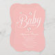 En charmerande inbjudan till rosa med orden "Baby" i vitt. Tre fjärilar fladder om.